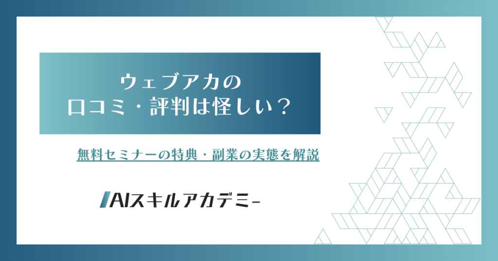 ウェブアカの口コミ・評判は怪しい?無料セミナーの特典・副業の実態を解説